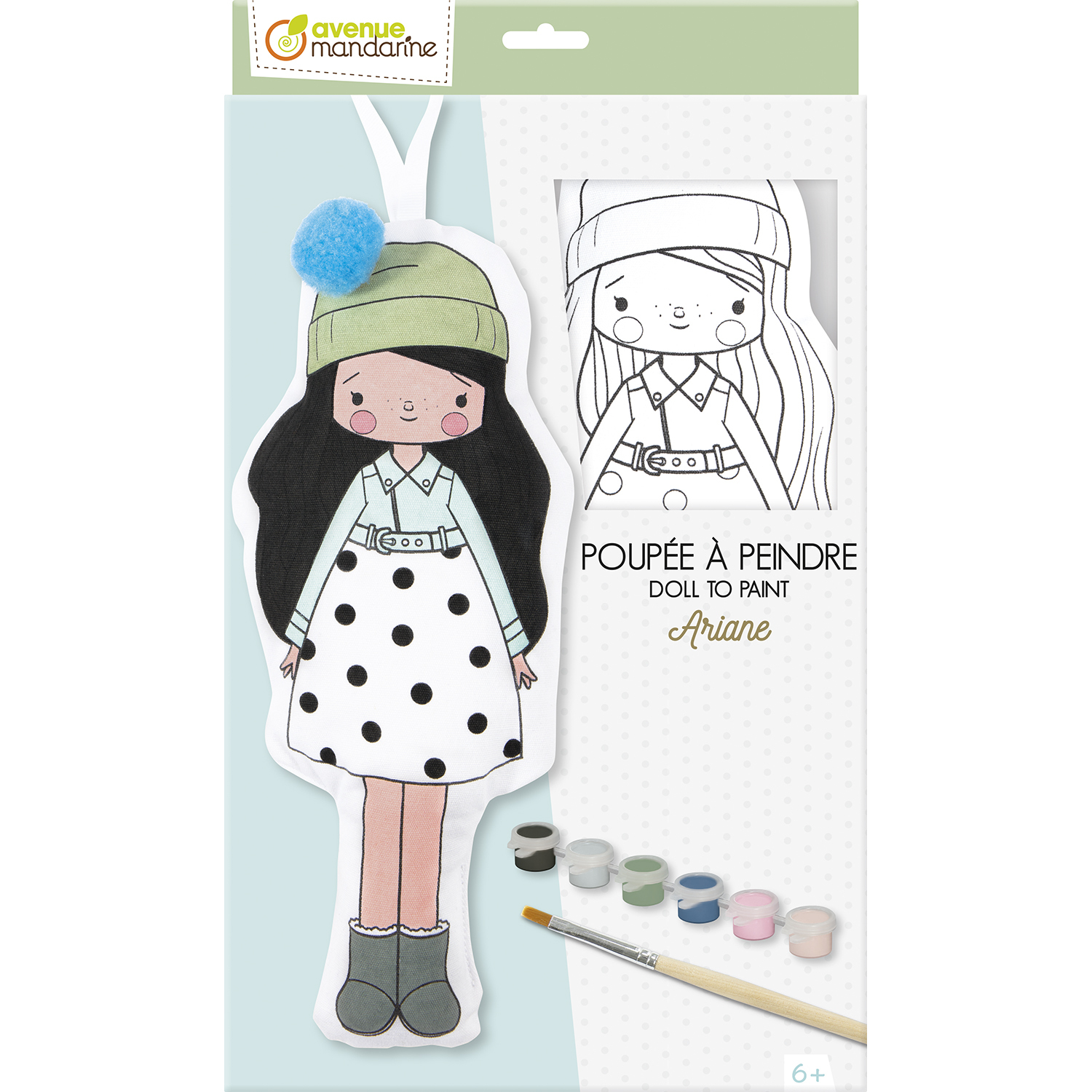 Panenka k vymalování Ariane je krásná tvořivá hračka pro malé výtvarnice. Tato hračka podporuje rozvoj tvořivosti, jemné motoriky a soustředění.Sada obsahuje vše potřebné: bavlněnou látkovou panenku k vymalování 6 lahviček s akrylovými barvami 1 štětec a barevnou stuhu další doplňky k dozdobení...
