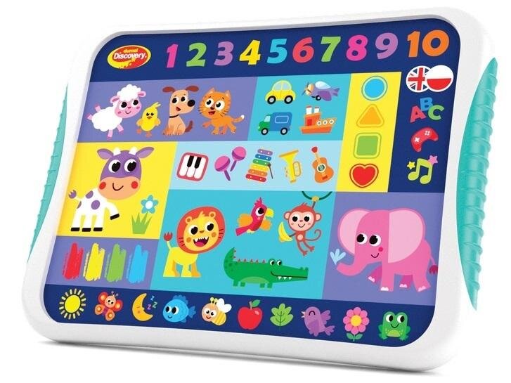 Dotykowy tablecik nauczy malucha pierwszych słówek i to od razu w dwóch językach! Zabawka wypowiada słowa z różnych grup tematycznych, a są wśród nich kolory, pojazdy, instrumenty muzyczne, figury, cyferki i zwierzątka. Aby usłyszeć wymowę danego słowa, wystarczy nacisnąć na odpowiedni obrazek....