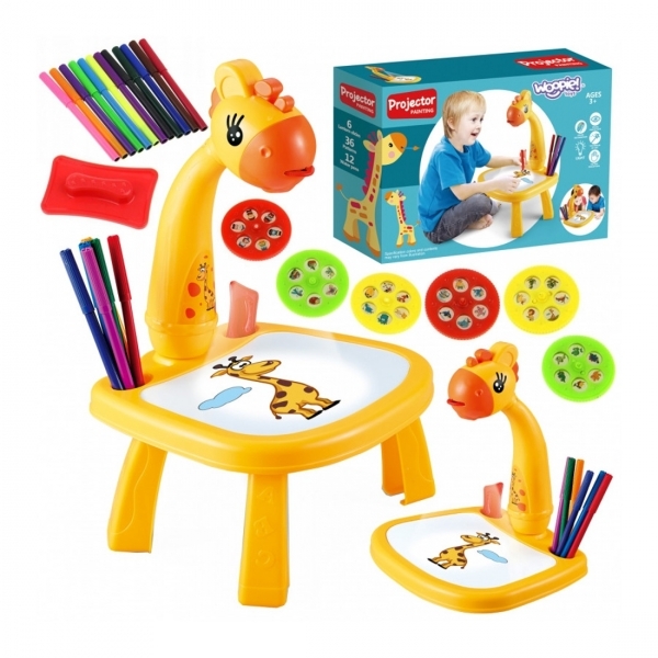 Kreslicí stoleček s projektorem + fixy, Žirafa, žlutý