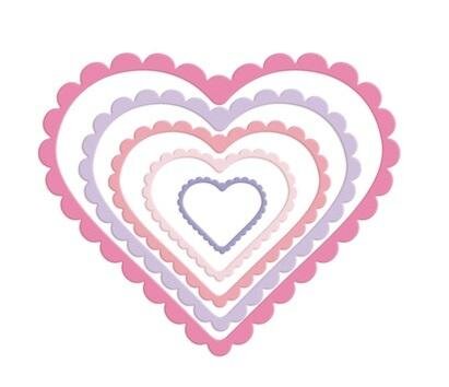 Zestaw wykrojników w kształćcie serce z falbanką w kilku wielkościach.Idealny dodatek do projektów ślubnych, walentynkowych, prezentów dla kogoś bliskiego - kartki walentynkowe, album ślubny, serca na piku dla babci i dziadka, dekoracja ślubnego bądź walentynkowego przyjęcia.W komplecie...