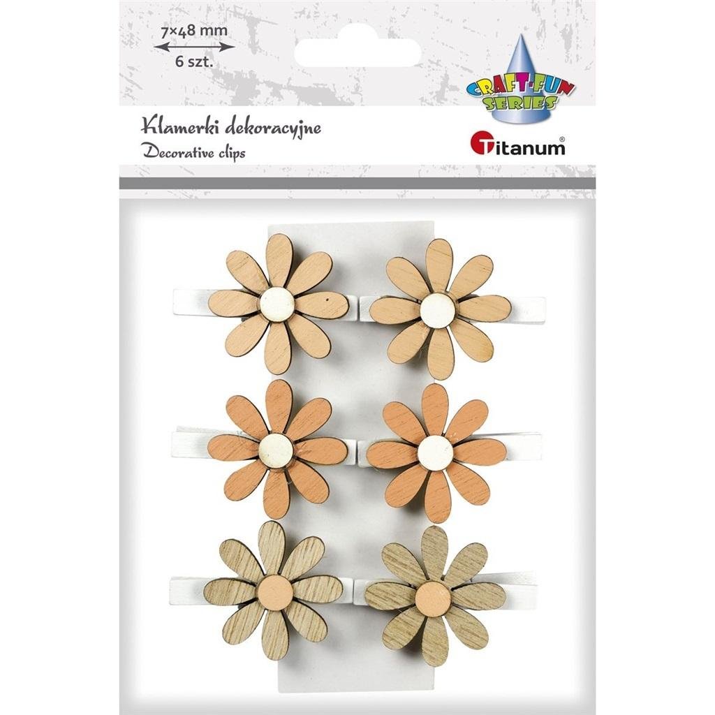 Ozdoba drewniana Klamerki kwiatki 6szt