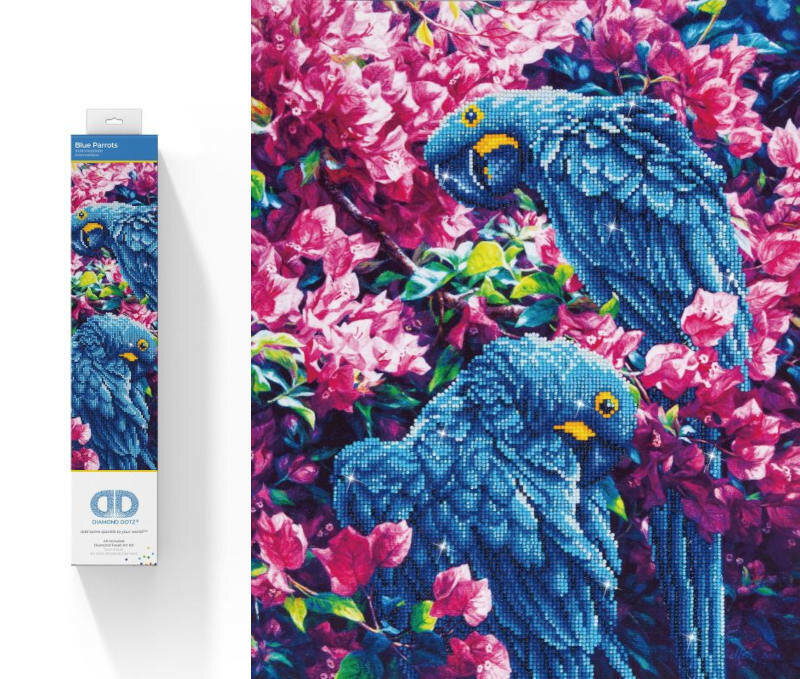 Haft diamentowy Diamond Dotz Diamentowa mozaika Niebieskie papugi 49,5x60cm DD10002