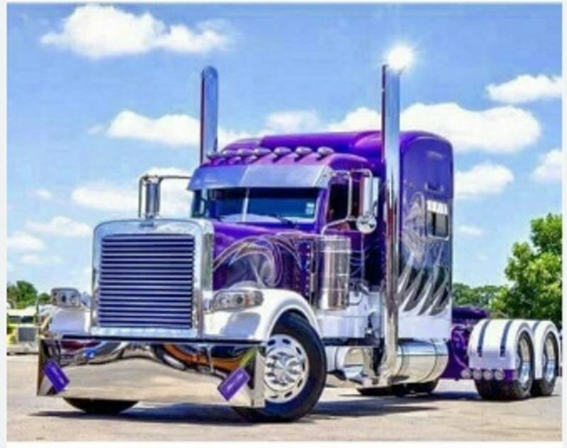 Malowanie po numerach Fioletowa ciężarówka solo na drodze, chmury 40x50cm 1008715