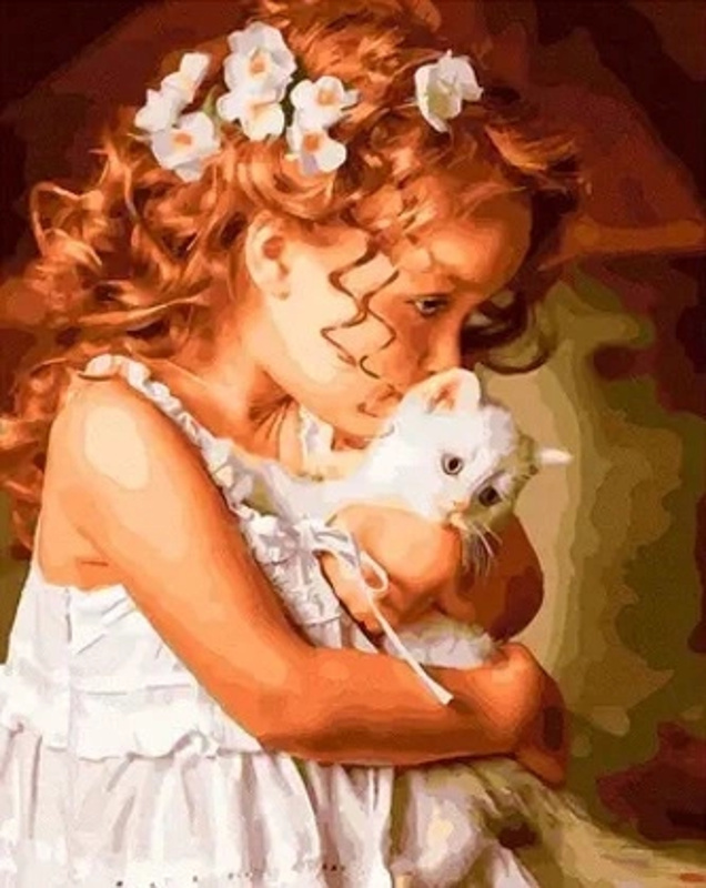 Malowanie po numerach Dziewczynka z kotkiem 50x40cm 1009865