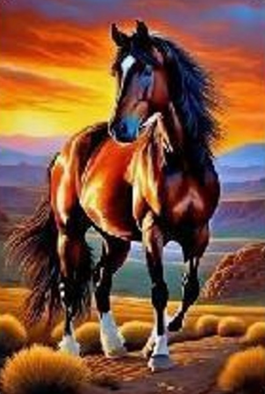 Diamentowa mozaika Koń na tle zachodzącego słońca 30x40cm 2000118