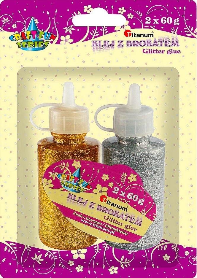 Klej z brokatem. Zamykane buteleczki, pojemność 2 x 60 g. Komplet 2 kolorów: srebrny, złoty. prečítať celé