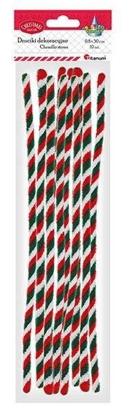 Druciki trójkolorowe. Kolory: czerwono-zielono-białe. Długość: 30 cm, szerokość: 0,8 cm. 10 sztuk. prečítať celé