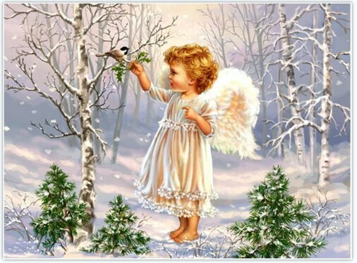 Malowanie po numerach Aniołek w zimowym krajobrazie 40x50cm 1009305