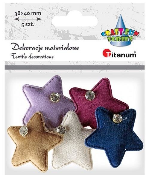 Ozdoba materiałowa Gwiazdki z krysztakiem mix 5szt