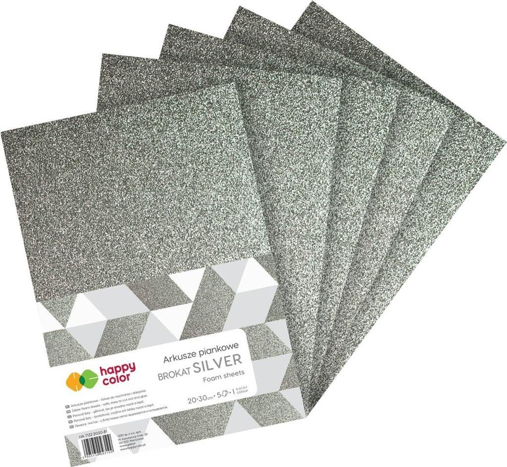 Arkusze piankowe A4 5szt brokat srebro HAPPY COLOR