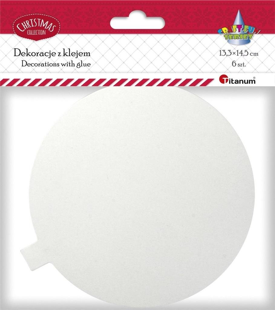 Dekoracje z kartonu o gramaturze 400 g - tylna strona pokryta warstwą klejącą zabezpieczoną papierem - kształt: bombka - wymiary: 13,3 x 14,5 cm - kolor: biały - blister: 6 szt. 6 szt. prečítať celé