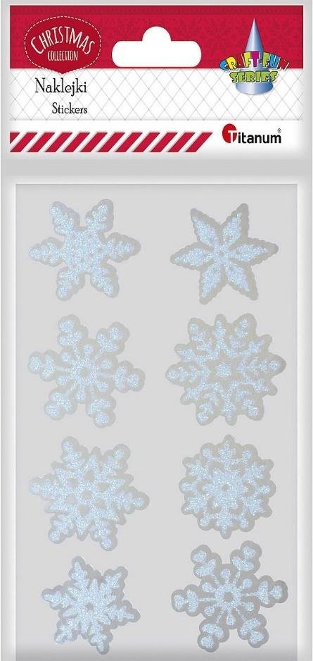 Naklejki dekoracyjne. Wykonane z folii. Wzór: płatki śniegu. Kolor: białe brokatowe. Wymiary: mix. 2 plansze. prečítať celé