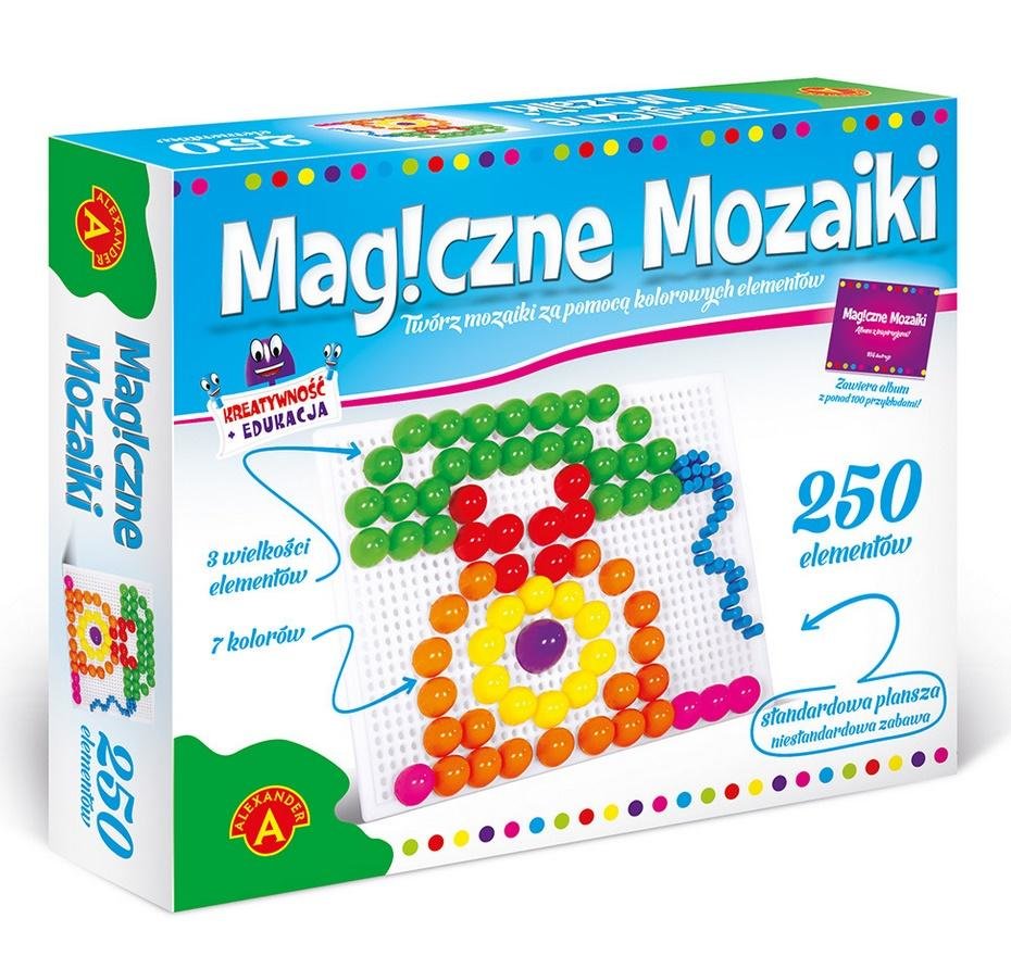 Kreatywna zabawka edukacyjna pozwalająca tworzyć niemal nieskończoną ilość fantazyjnych obrazków. W jej skład wchodzi plastikowa tablica z otworami oraz 250 kolorowych wpinek. Do zestawu dołączony jest album zawierający ponad 100 inspiracji. Zabawka ćwiczy kreatywność i wyobraźnię.Zawartość...