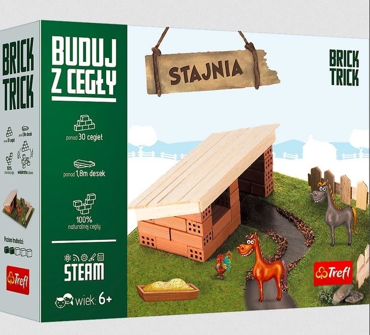 Stajnia w rozmiarze S to zestaw wyjątkowych klocków ceramicznych serii Brick Trick. Do budowy konstrukcji wykorzytaj prawdziwe cegły, drewniane deseczki oraz elementy dekoracyjne, takie jak trawa, korek, krzewy i kartonowe figurki. Zestawy Brick Trick możesz dowolnie łączyć ze sobą, tworząc tym samym wielkie, wyjątkowe budowle.