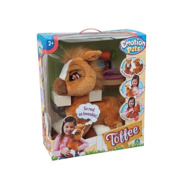 Toffee to interaktywny kucyk, który potrzebuje dziecięcej troski i miłości.Wydaje dźwięki, mruga oczkami, porusza uszami.Posiada aż 6 różnych funkcji:1. Mruga oczami2. Chrupie, podczas jedzenia marchewki3. Rusza uszkami, gdy się boi4. Wzywa do zabawy5. Cieszy się, gdy go czeszesz6. Jest mięciutki...