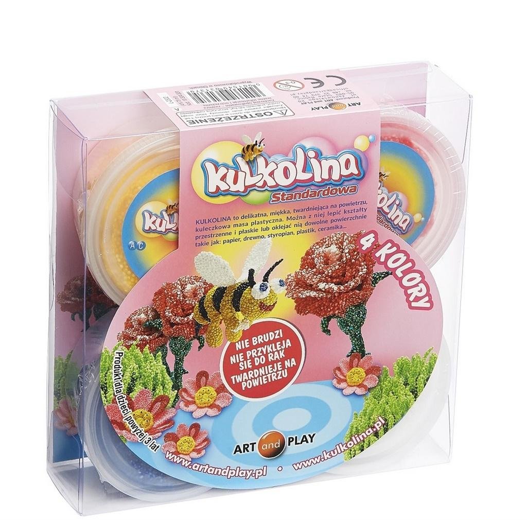 Kulkolina to delikatna, miękka, twardniejąca na powietrzu kuleczkowa masa plastyczna. Można z niej lepić kształty przestrzenne i płaskie lub oklejać nią dowolne powierzchnie takie jak: papier, drewno, styropian, plastik, ceramikę. Mieszając ze sobą różne kolory Kulkoliny można uzyskać nowe...