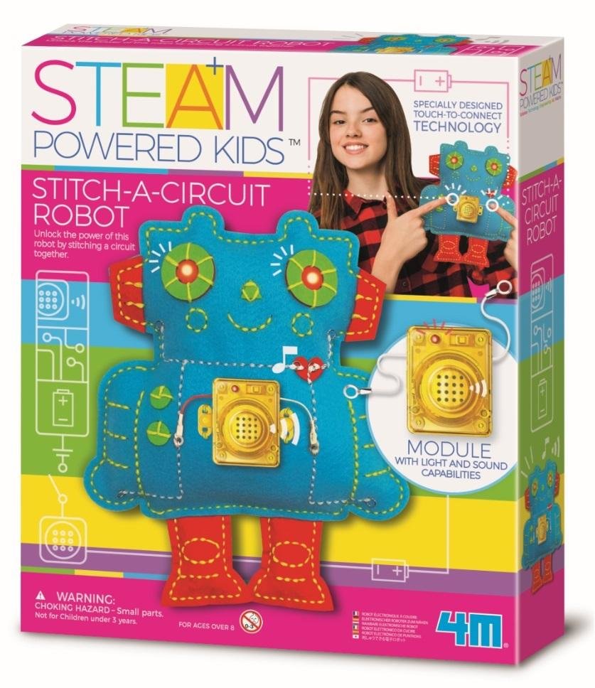 Zrób działający obwód elektryczny zszywając ze sobą elementy robota! Seria Steam powstała specjalnie, by zainteresować nauką te dziewczynki, którym nie odpowiada surowy design klasycznych zabawek konstrukcyjnych. Zestaw zawiera: wstępnie wycięte kształty filcowe, 1 moduł dźwiękowy i diodowy z 2...