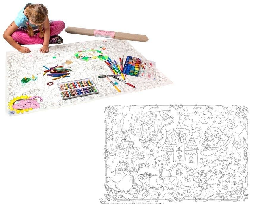 Kolorowanka w rozmiarze 120cm x 80cm. Ogromna powierzchnia do kolorowania kredkami, flamastrami i farbami. Wzmocniony spód arkusza zabezpiecza przed przesiąkaniem farb. Kolorowanka wykonana jest z grubego kartonu, który można bez końca rozkładać i zwijać!Kolorowanki rozwijają sprawność manualną -...