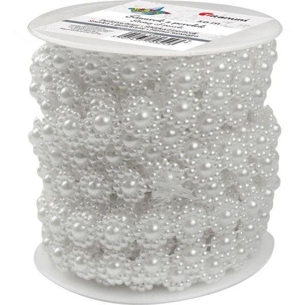 Perełki na sznurku, wykonane z plastiku, z jednej strony są płaskie, dzięki czemu można je przyklejać. Nie przesuwają się po sznurku, można je dowolnie przycinać. Długość: 10 m, kolor: białe perłowe. prečítať celé