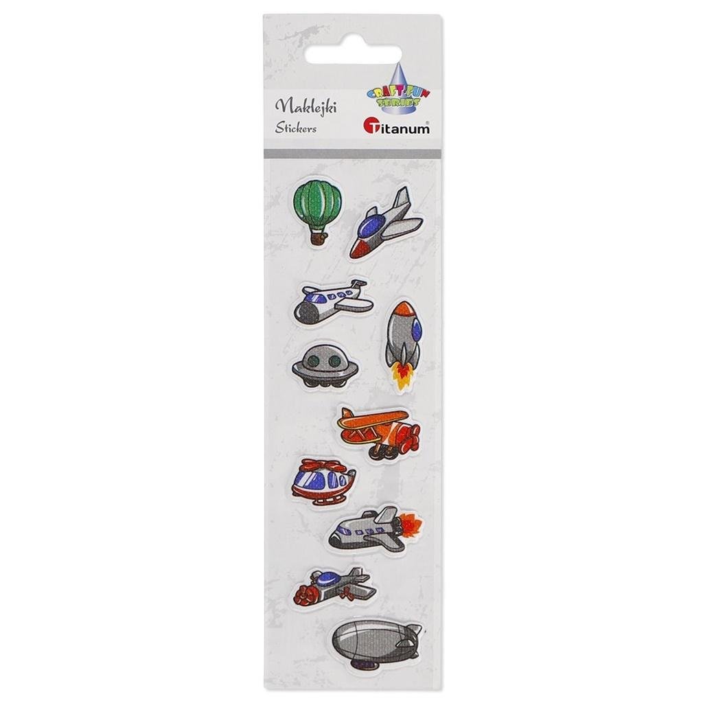 Naklejki wypukłe miękkie. Kształty: balon, samoloty, helikopter, zeppelin, rakieta, wahadłowiec, ufo, kolory: mix. 10 sztuk. prečítať celé