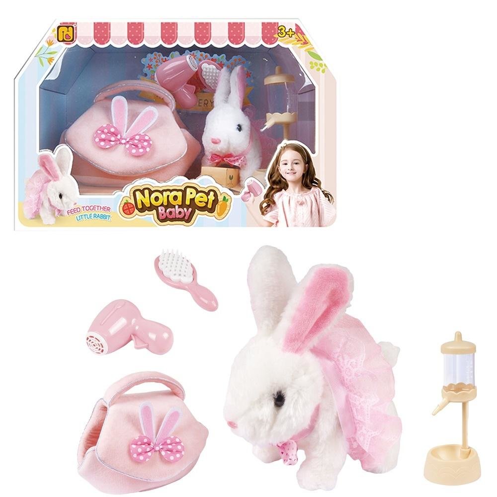 Zajączek radośnie kica, rusza pyszczkiem oraz uszami i ogonkiem, niczym prawdziwy zając.Miły w dotyku plusz z pewnością przyniesie dużo radości każdemu dziecku. W zestawie z akcesoriami do pielegnacji oraz torbą do przenoszenia zajączka.Zasilanie: 2xAA (brak w zestawie)Wiek: 3+Wymiary opakowania: 43x19.2x28 cm cm