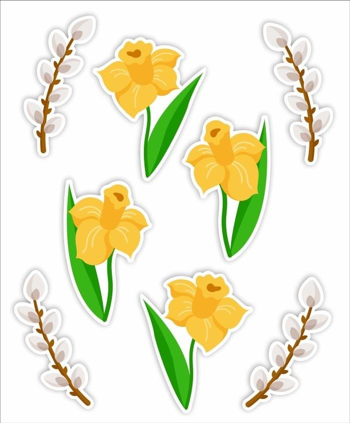 Dekoracje okienne dwustronne - Żonkile i bazie 8el