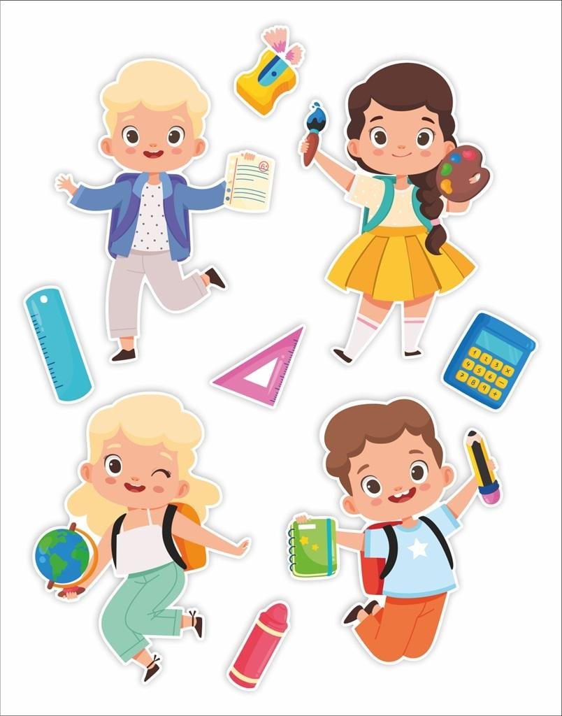 Zestaw zawiera aż 4 DUŻYCH szkolnych dzieci oraz 5 kolorowych elementów - wydrukowanych dwustronnie!Dekoracje są wycięte, gotowe do powieszenia.Zestaw składa się z 9 dekoracji - idealne szczególnie do szkoły i przedszkola.Świetnie sprawdzi się jako ozdoba na okno, w szczególności w szkolnych...