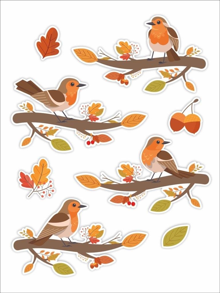 Dekoracje jesienne - Ptaszki na gałęzi 8szt