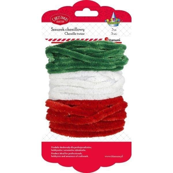 Sznurki szenilowe 3 kolory x 3m czerwony, biały, zielony prečítať celé