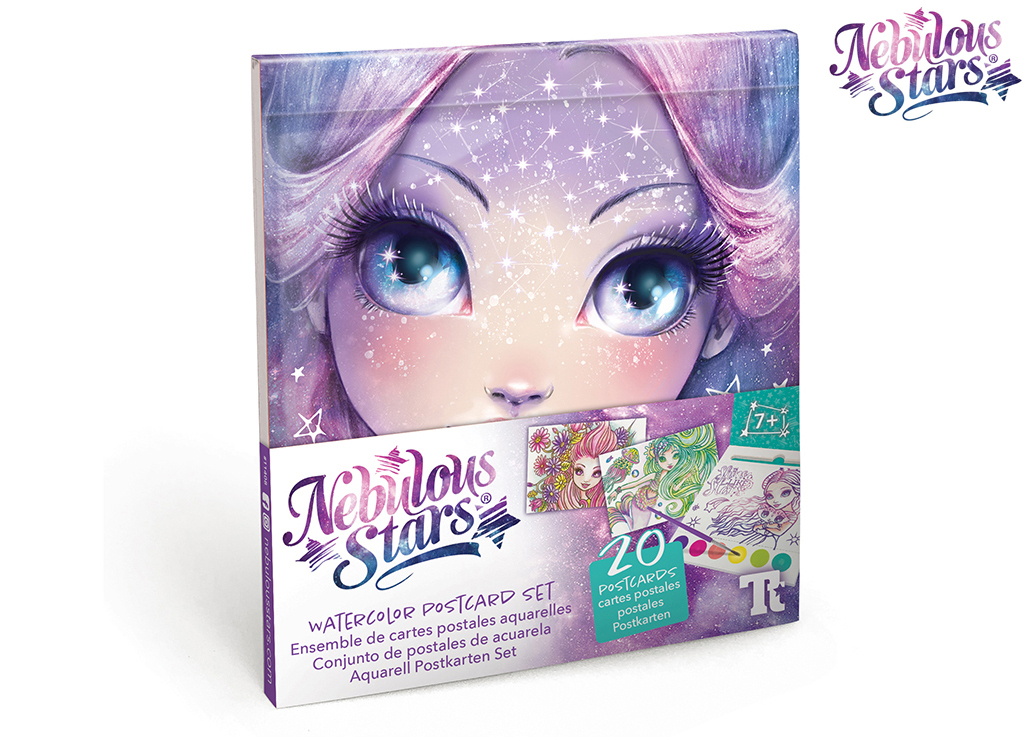 Nebulous Star Akvarel pohlednice set. Sada 20 vybarvovacích pohlednic. Obsahuje štětec a akvarely. Display box - 24 ks. 2 varianty - fialová, oranžová. prečítať celé