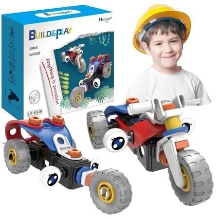 Młody Inżynier - Motocykle 37 elementów.Zestaw zawiera:elementy do zbudowania pojazdów,narzędzia do zmontowania pojazdów (śrubokręt, klucz, śrubki),instrukcja obrazkowa. prečítať celé