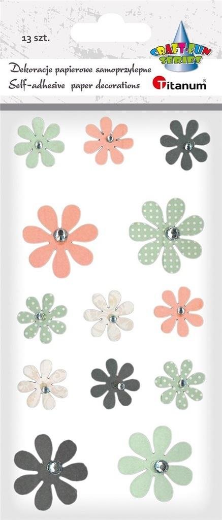 Naklejki papierowe kwiatki z kryształkiem 13szt