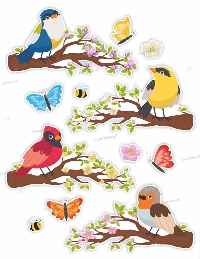 Zestaw zawiera 12 elementów - wydrukowanych dwustronnie!Dekoracje są wycięte, gotowe do powieszenia.Duży zestaw dekoracji składa się z 4 dużych ptaków, 4 motyli, 2 pszczółek i 2 kwiatków - idealne do wiosennej dekoracji szkoły i przedszkola.Świetnie sprawdzi się jako ozdoba na okno, w...