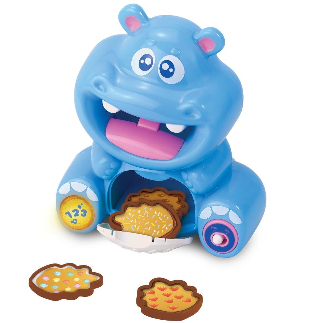 Dwujęzyczny Hipcio (polski/angielski) liczy kolorowe ciasteczka, łakomie się nimi zajadając. Kiedy Dziecko naciśnie na stópkę rozpocznie zabawę w liczenie oraz usłyszy zabawne dźwięki i melodie. Nakarm Hipcia i policz ile jest w stanie zjeść ciasteczek. Po wyjęciu ciasteczek z brzuszka rozpoczynamy zabawę od nowa.