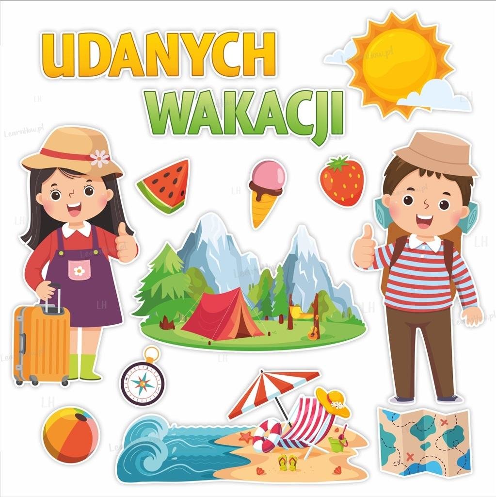 Zestaw zawiera aż 13 kolorowych elementów.Cała dekoracja jest wycięta, gotowe do powieszenia.Zestaw składa się z 2 dużych postaci dzieci, 7 elementów związanych z wakacjami, 2 dużych krajobrazów.Dekoracja świetnie sprawdzi się na festynach, szkolnych i przedszkolnych apelach oraz w wielu innych...