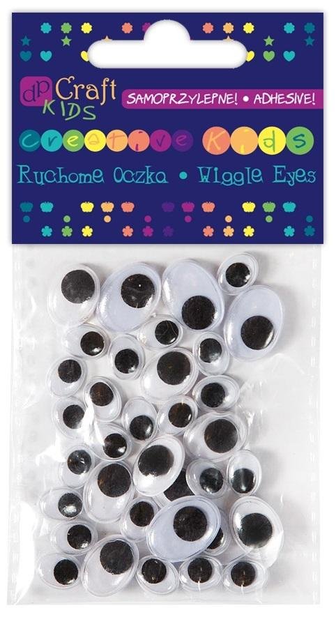 Samoprzylepne ruchome oczka znakomicie nadają się do wszelkiego rodzaju dziecięcej aktywności twórczej.Można nimi ozdobić własnoręcznie wykonaną lalkę, zwierzątko lub inną postać.Doskonale sprawdzają się w cardmakingu, scrapbookingu oraz wielu innych technikach kreatywnych.Ilość w opakowaniu: 36...