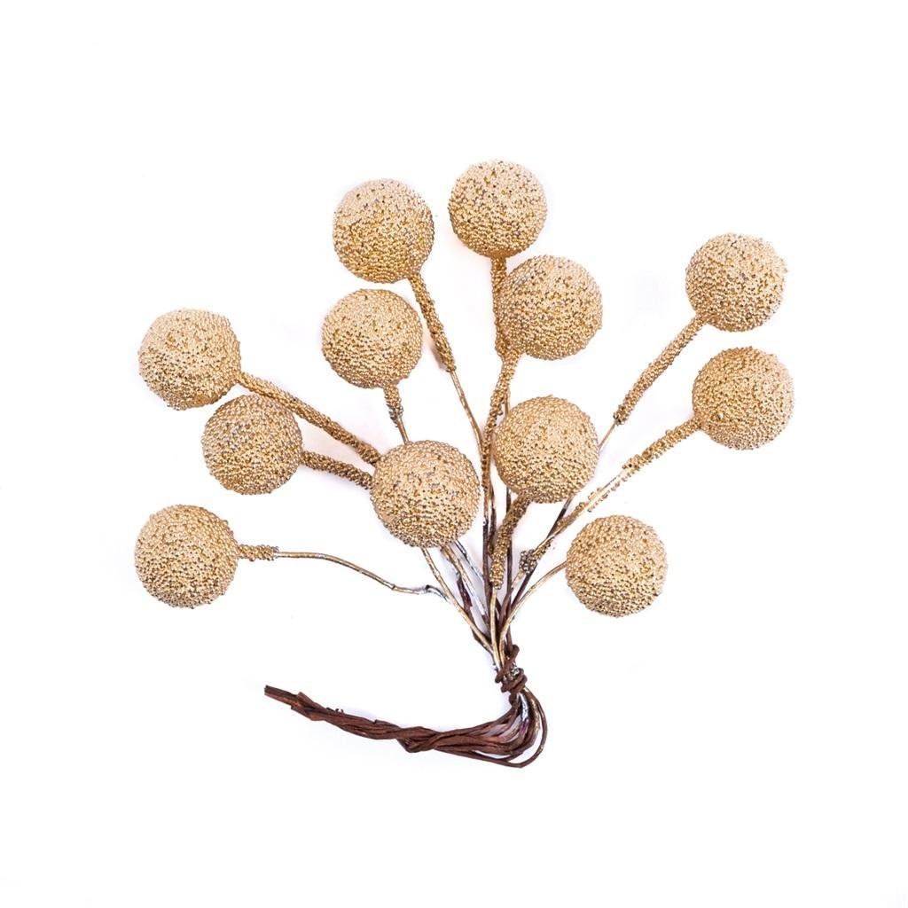 Dekoracyjne jagody na drucikach pokryte złotymi granulkami, które fantastycznie błyszczą w świetle. Drucik można w łatwy sposób modelować, układając złote jagody w perfekcyjny sposób.Dodadzą blasku okolicznościowym wiankom, stroikom i kompozycjom florystycznym. Fantastycznie sprawdzą się do...