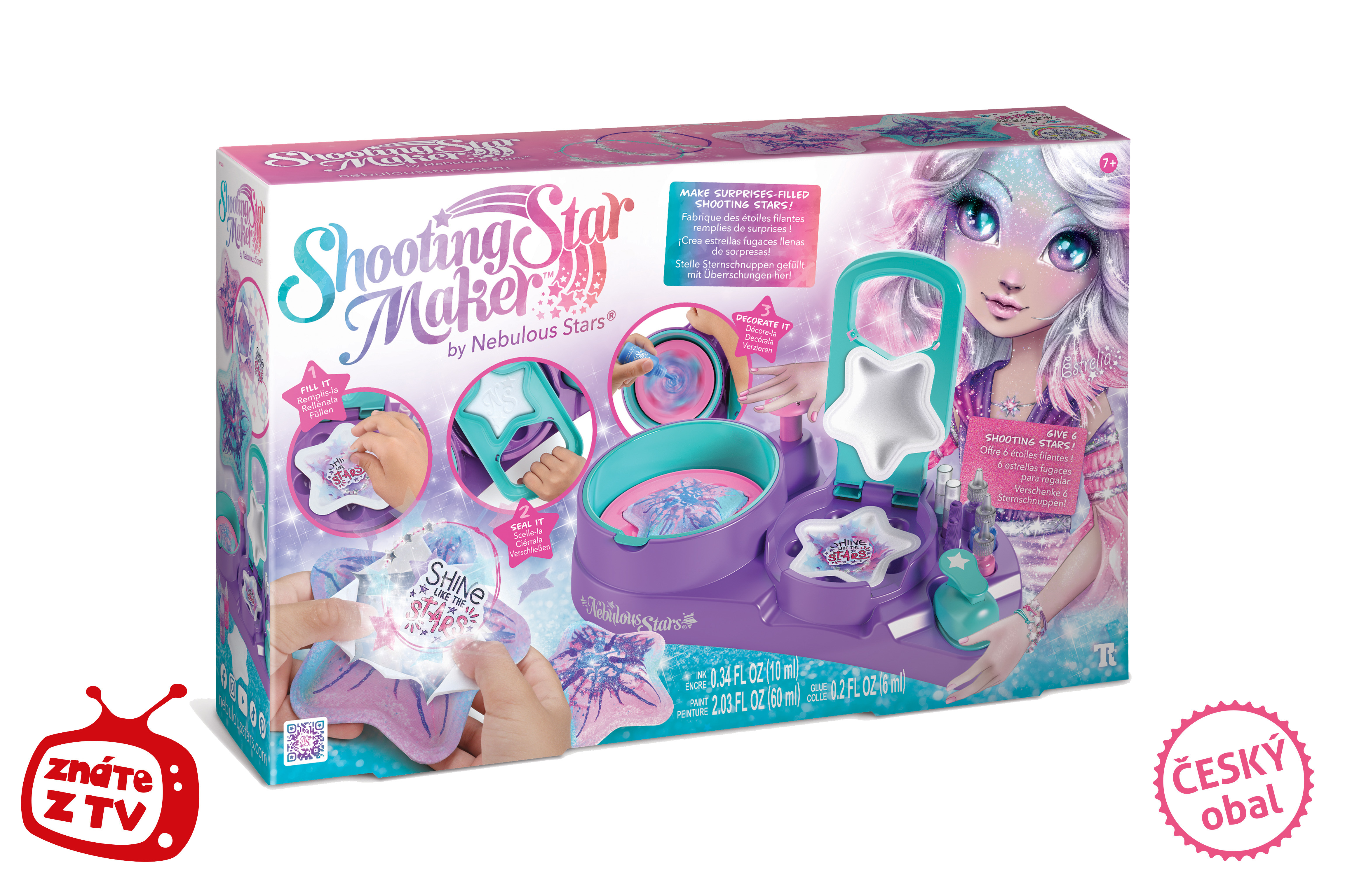 přístroj na výrobu padajících hvězd, 12x hvězdička z buničiny, děrovač ve tvaru hvězdy, 3 lahvičky s barvou, 2 lahvičky s inkoustem, 4 archy s inspirativními zprávami, 12 archů hedvábného papíru, tuba se třpytivým práškem, tuba lepidla, 64 korálků, 6 šňůrek, příběh Estrelie
