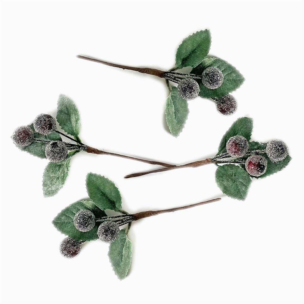 Szronione gałązki z jagodami bordo 4szt
