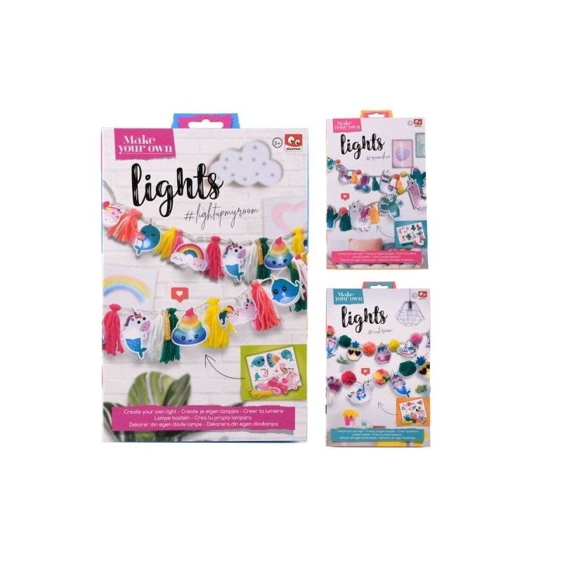 Zestaw do stworzenia własnej lampki w formie świecącej girlandy, a w nim: kolorowe włóczki, światełko (na baterie 2 x 1,5 AA, w zestawie testowe), elementy ozdobne, instrukcja krok po kroku. 3 wzory, wysyłka losowa, cena za sztukę. Uruchom wyobraźnię i zrób własną lampkę. Zestaw stymuluje wyobraźnię i umiejętności manualne dziecka.