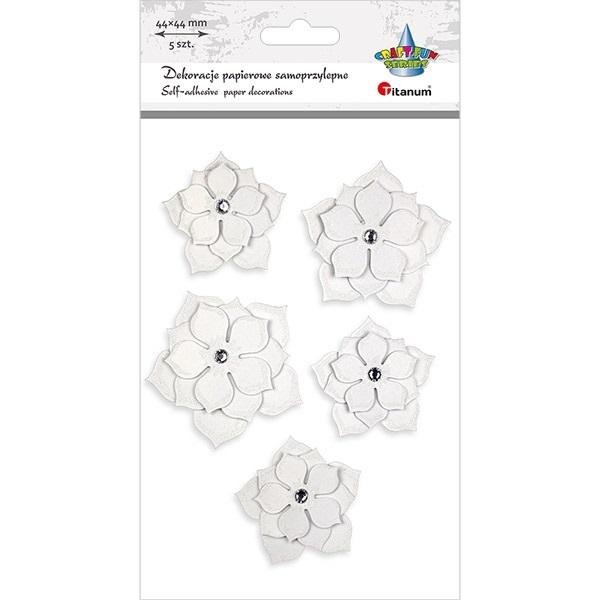 Kwiaty papierowe samoprzylepne 3D białe 5szt