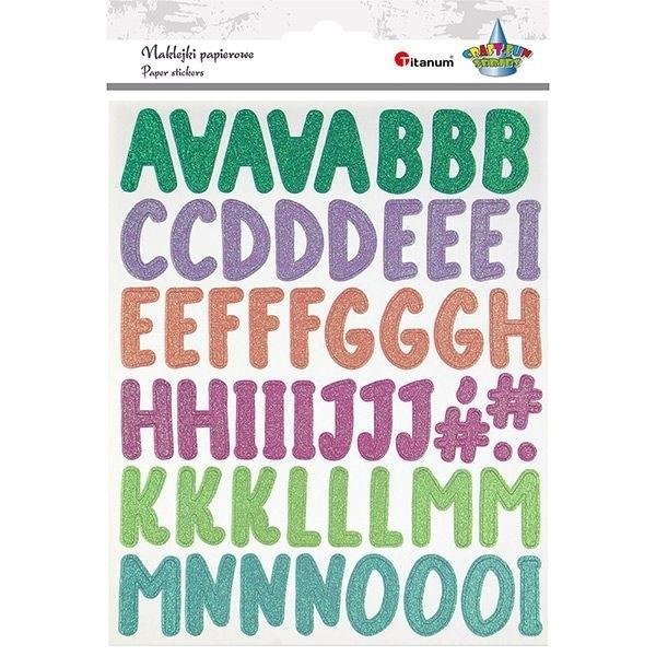 Naklejki papierowe 2 plansze alfabet i cyfry brokatowe wysokość liter 26 mm, 109 szt. prečítať celé