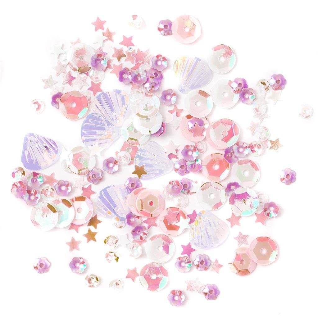 Mix cekinów opalizujących "Unicorn" to niesamowita kompozycja składająca się z wyjątkowych kształtów i kolorów. Zestaw ten zawiera aż sześć rodzajów cekinów. Znajdziesz w nim klasyczne, okrągłe (w dwóch rozmiarach i aż trzech wariantach kolorystycznych), muszelki oraz drobne kwiatki i...