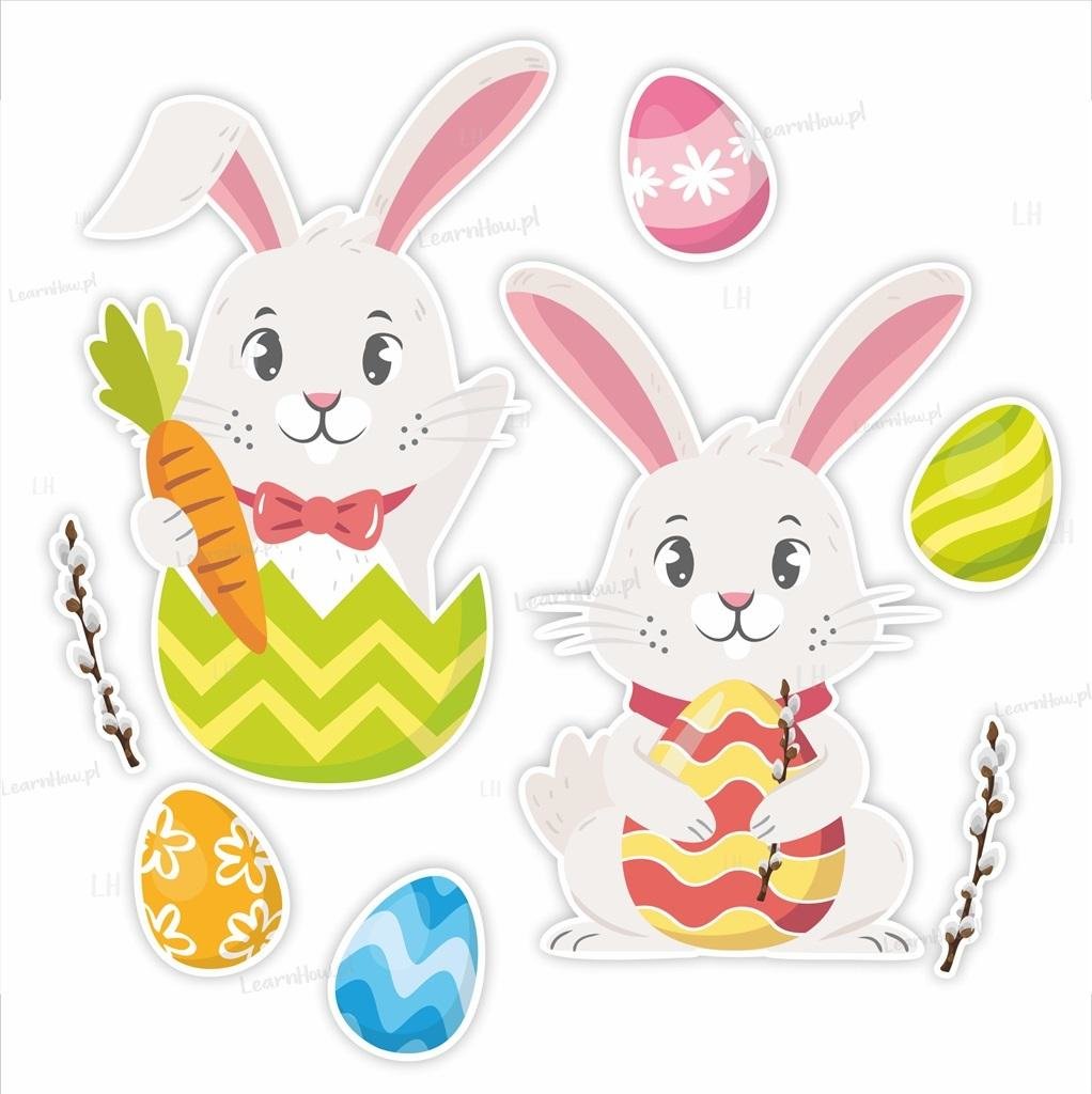 DEKORACJA - WIELKANOC - ZAJĄCZKI WIELKANOCNE 03 - DWUSTRONNE ~A3(8 elementów, dwustronna)Zestaw zawiera 8 elementów - wydrukowanych dwustronnie!Dekoracje są wycięte, gotowe do powieszenia.Zestaw składa się z 2 dużych zajączków, 4 pisanek oraz 2 gałązek bazi - idealny zestaw do Wielkanocnej...
