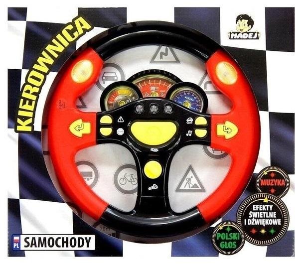 Kierownica wyposażona jest w 7 przycisków, które po naciśnięciu wydają komunikaty i dźwięki. Zabawka śpiewa i mówi po polsku. Opakowanie w polskiej wersji językowej prečítať celé