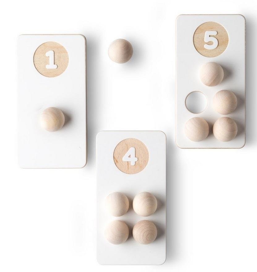 Cyfry drewniane klocki do nauki liczenia, 10 klocków oraz 14 kulek w zestawie.