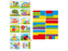 Zestaw zawiera: 12 plansz z obrazkami 7 arkuszy naklejek o różnych kształtach i kolorach