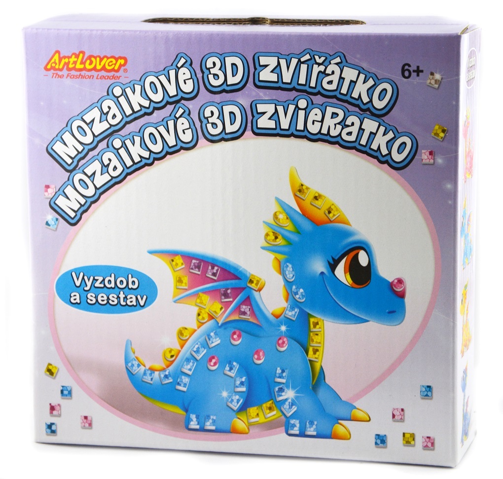 Balení obsahuje: 4 sady předloh - každá sada obsahuje tělo zvířátka a dva boky - 4 dráčci růžový, modrý, tmavě modrý, žlutý.40 oboustranných pěnových čtverečků,4 balení mozaikových samolepek.Postup: Mozaikové samolepky nalepte na vyznačená místa podle barev. Na tele zvířátka jsou vyznačené body...