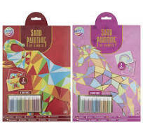 Balení obsahuje:8 barevných písků ve skleněné zkumavce - modrozelený, růžový, červený, sv. modrý, tm. modrý, žlutý, béžový, zelený.2 obrázky s lepící plochou.Postup: Nejprve odlepte okrajovou část obrázku, kterou posypete pískem, nadbytečný písek vrátíte do zkumavky ,a řad za řadou odstraňujete...