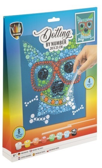 Malování pomocí teček a čísel.Sada obsahuje obrázek, který se vybarvuje pomocí teček dle předtištěných čísel, součástí je 8 ks barev a aplikátory.Rozměr: 20x 25 cm prečítať celé